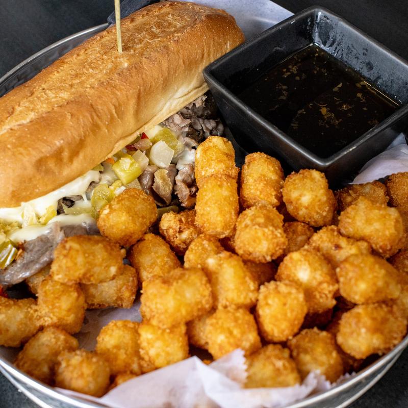 Tator tots, queso sauce, cheddar-jack cheese, tomatoes, pickled red onions, sliced fresh jalapenos • Add Grilled Chicken +$4.00 | Pulled Pork +$5.00 | Steak Ribeye +$5.00 | Italian Beef +$5.00
