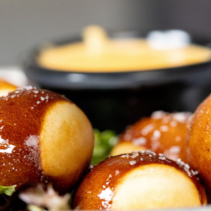Warm Bavarian pretzel bites, sea salt. Cheddar-ale cheese dipping sauce.