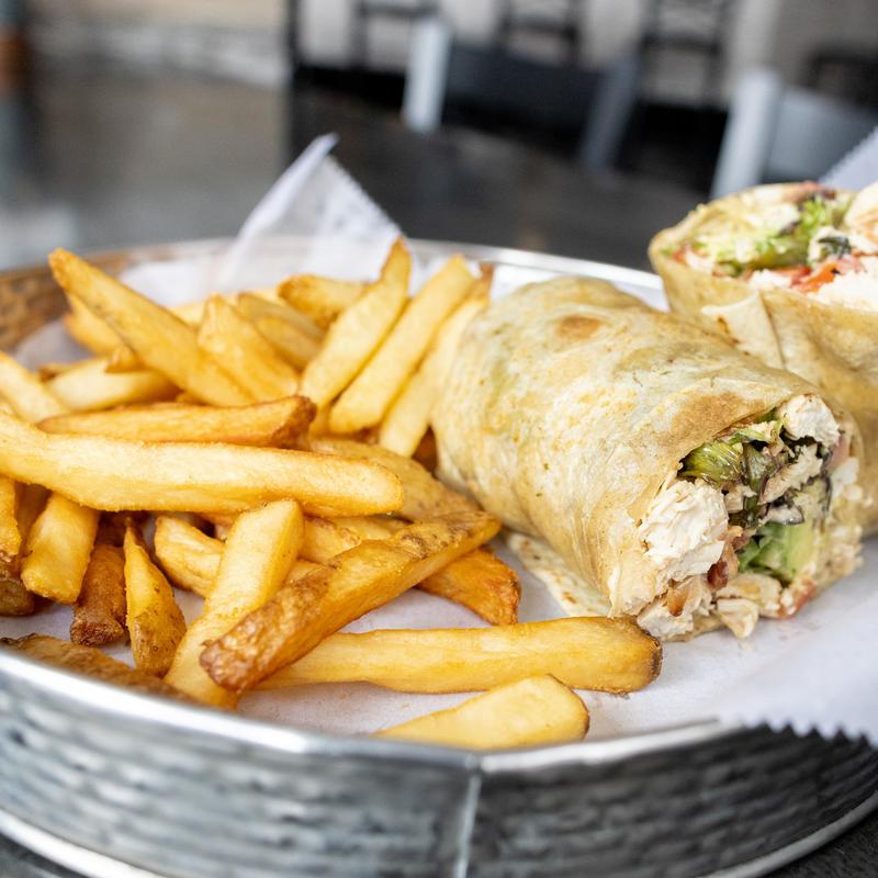 Grilled chicken, mixed greens, cheddar-jack cheese, tomatoes, avocado, bacon, adobo ranch wrapped in wrapped in warm herb tortilla.
